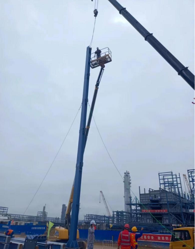 此次吊裝難度大,最大塔高度49米,穿衣戴帽后最大重量195噸。為組織好這兩臺塔器的吊裝工作,項(xiàng)目施工人員對設(shè)備吊裝過程的每一步“精打細(xì)算”,吊裝嚴(yán)格按照方案執(zhí)行并進(jìn)行技術(shù)交底。吊裝期間,項(xiàng)目主要管理人員堅(jiān)守現(xiàn)場,對設(shè)備吊裝情況實(shí)時監(jiān)督,直至塔器順利安裝就位。此次吊裝,獲得監(jiān)理業(yè)主一致認(rèn)可,為后續(xù)施工打下了堅(jiān)實(shí)基礎(chǔ)。